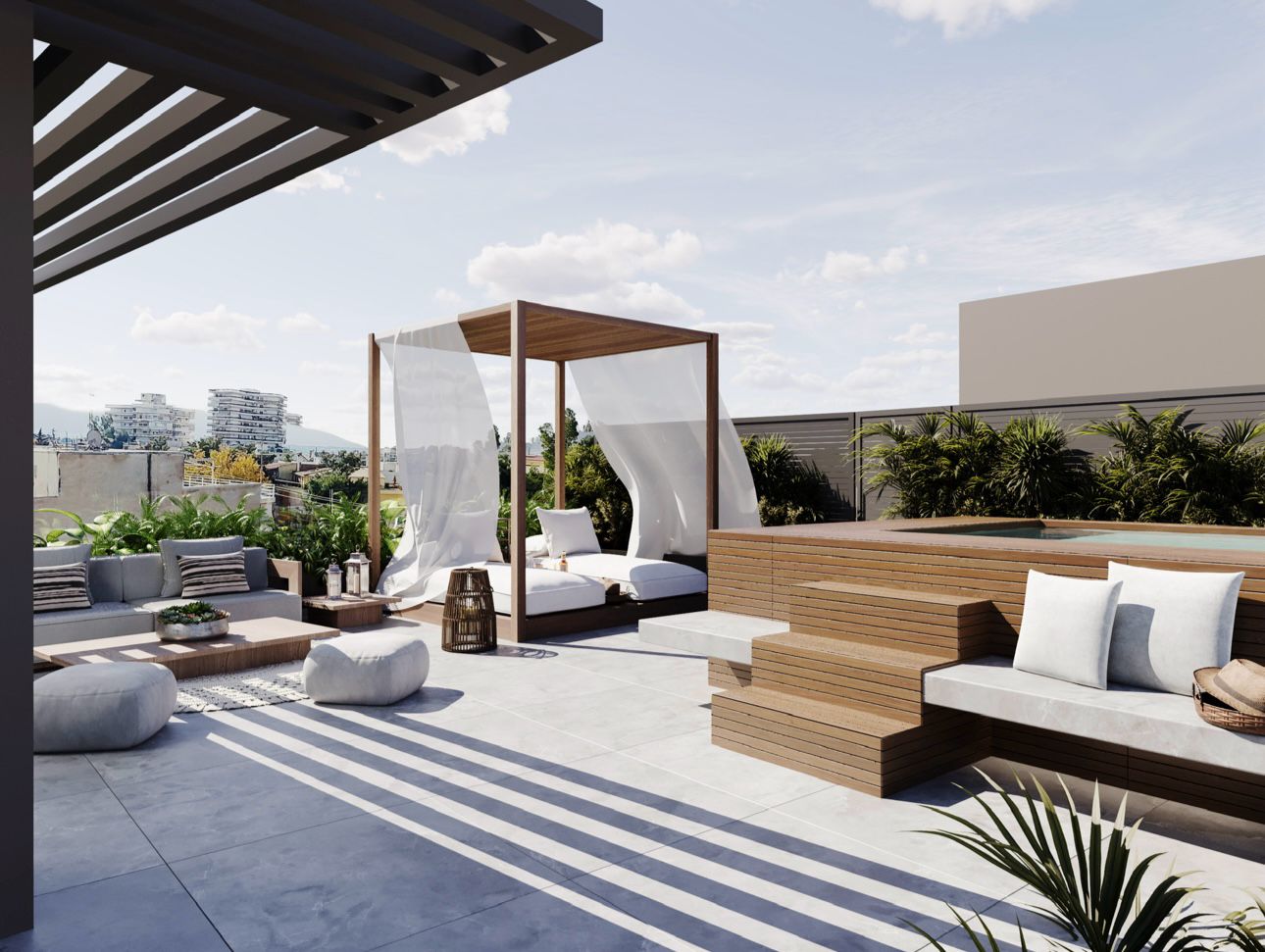 Three large jacuzzis and private relaxation areas on the rooftop terrace