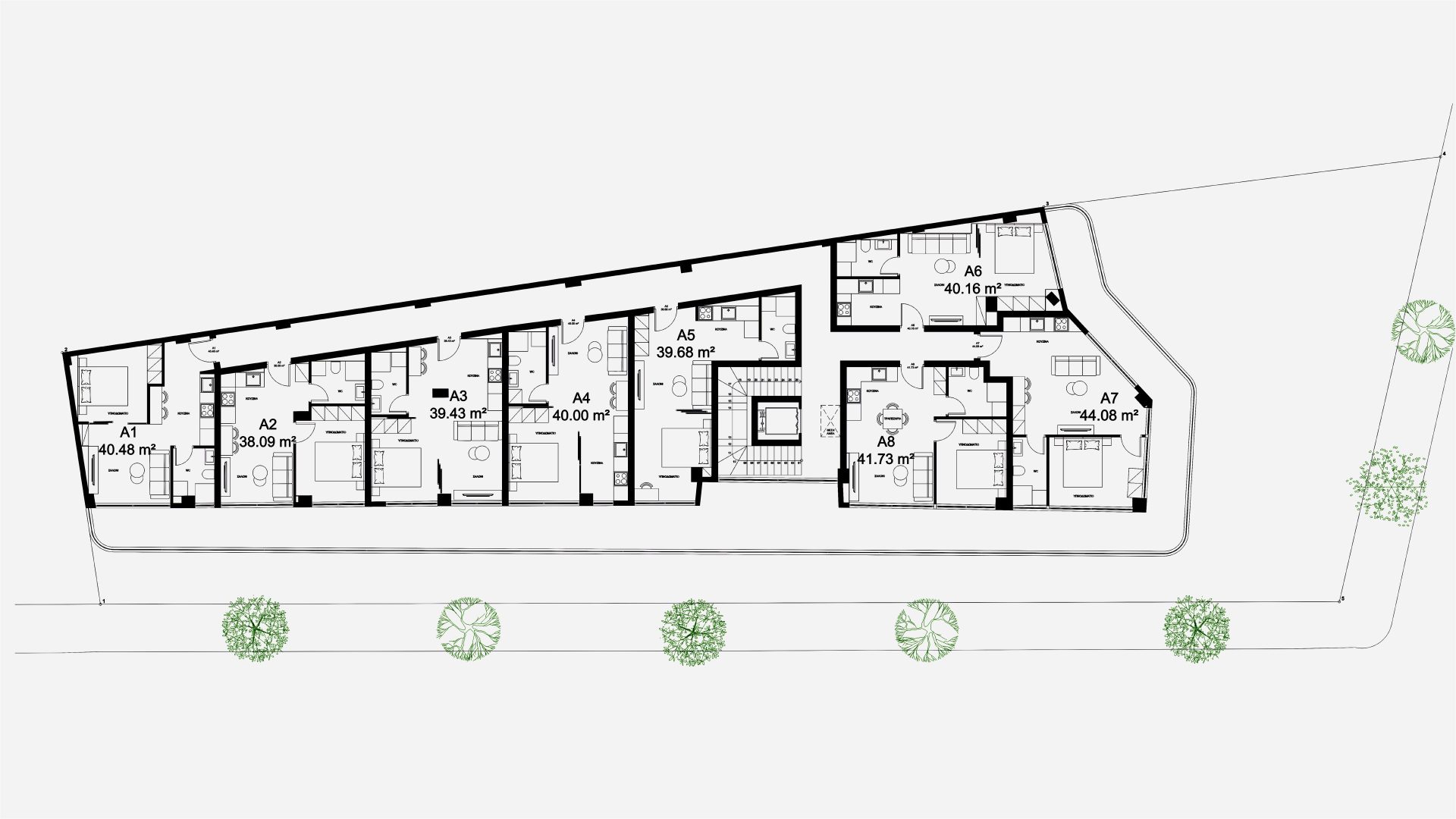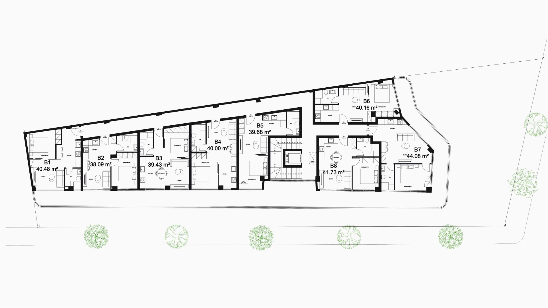 This project has been developed in accordance with the latest Greece Golden Visa regulations, where a commercial building has been converted into a residential property. The project includes a total of 24 luxury apartments, each 40 m² in size, consisting of 1 bedroom and 1 living room, all featuring balconies and gardens.