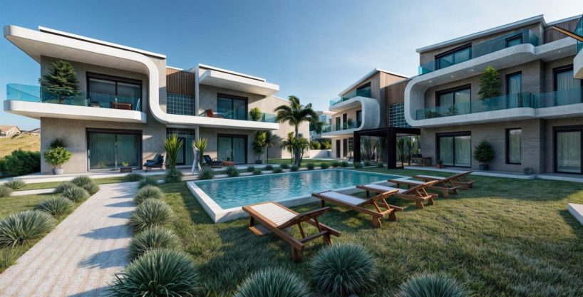 24 Modern apartments, 2 large swimming pools, magnificent sea views, landscaped spacious gardens, 12 one-bedroom apartments with terrace and garden, 12 two-bedroom duplex apartments with terrace and balcony.