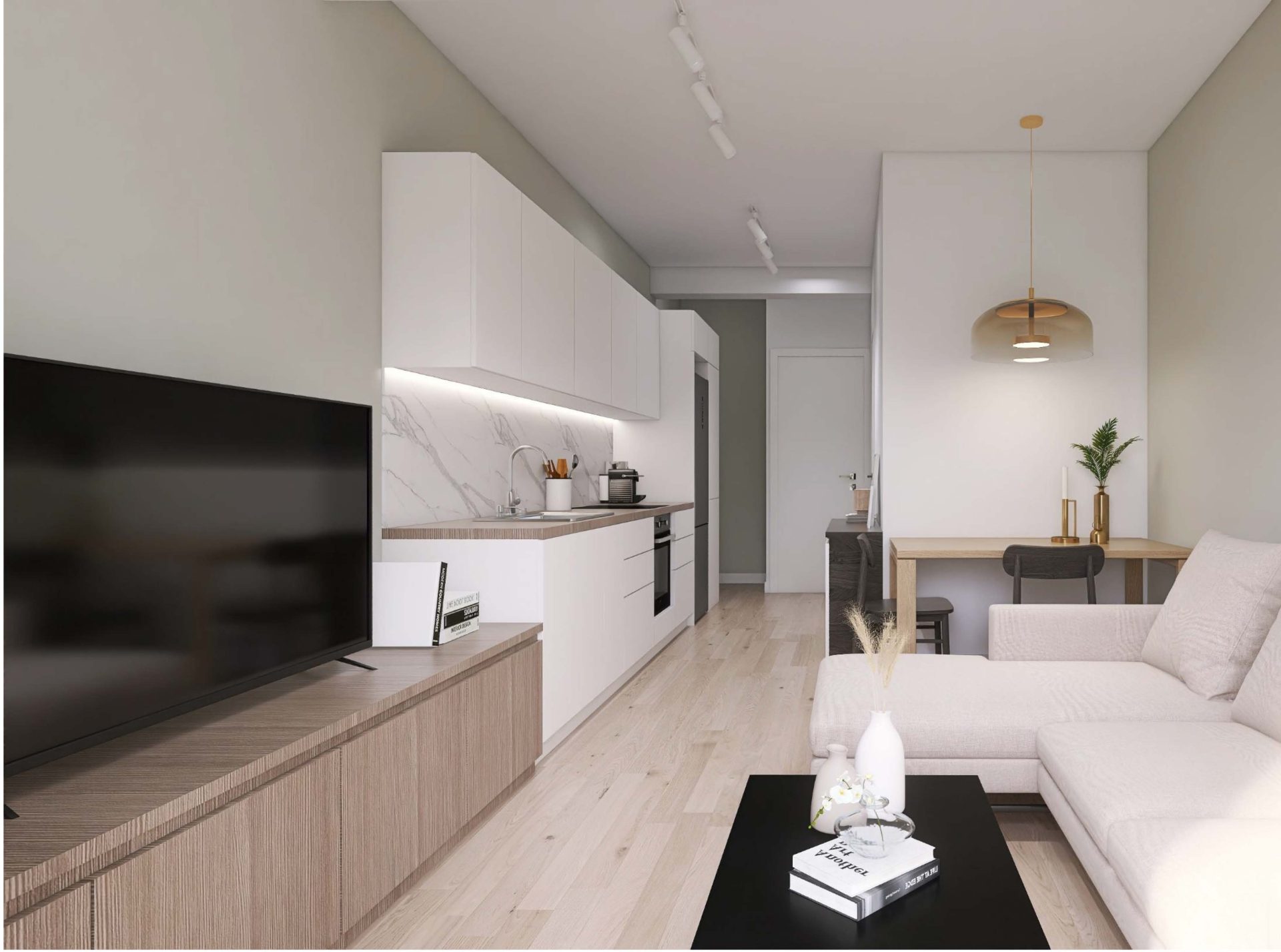 In this modern project, featuring a total of 9 floors, there are 17 one-bedroom apartments. Equipped with a European kitchen and Grohe brand products, the apartments offer high standards of comfort. The delivery date is planned for the first quarter of 2027.