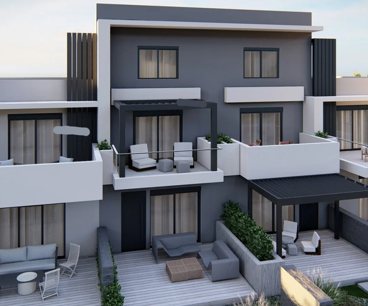 8 triplex bitişik nizamlı villa tarzı 2 oda 2 banyolu dairelerden oluşan projede daireler hem balkon hem de teraslara sahip ayrıca bakımlı ve iyi peyzajı olan bahçeler de cabası.